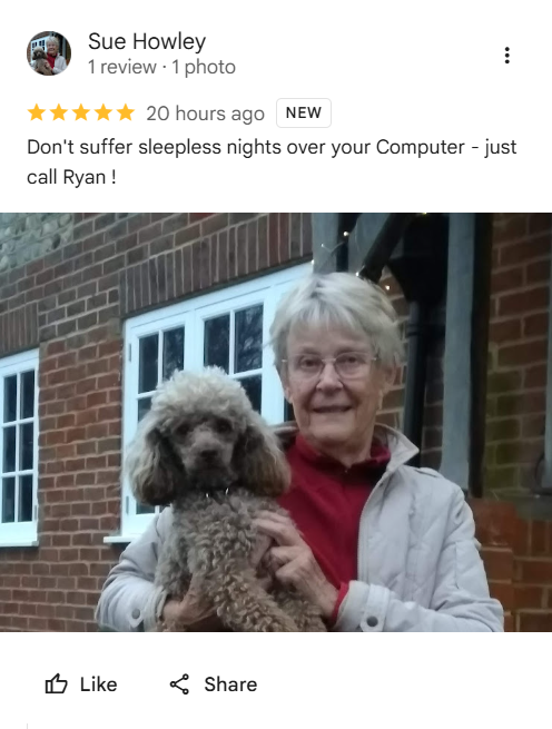 It was a pleasure teaching Sue from Steyning how to get her computer up and running. And what a lovely little dog too!